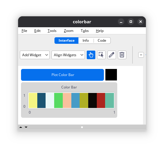 ColorBar is a NetLogo model demonstrating how to create a simple color bar plot. Since NetLogo does not include a built-in color bar widget, this model provides a workaround by drawing one using temporary plot pens.