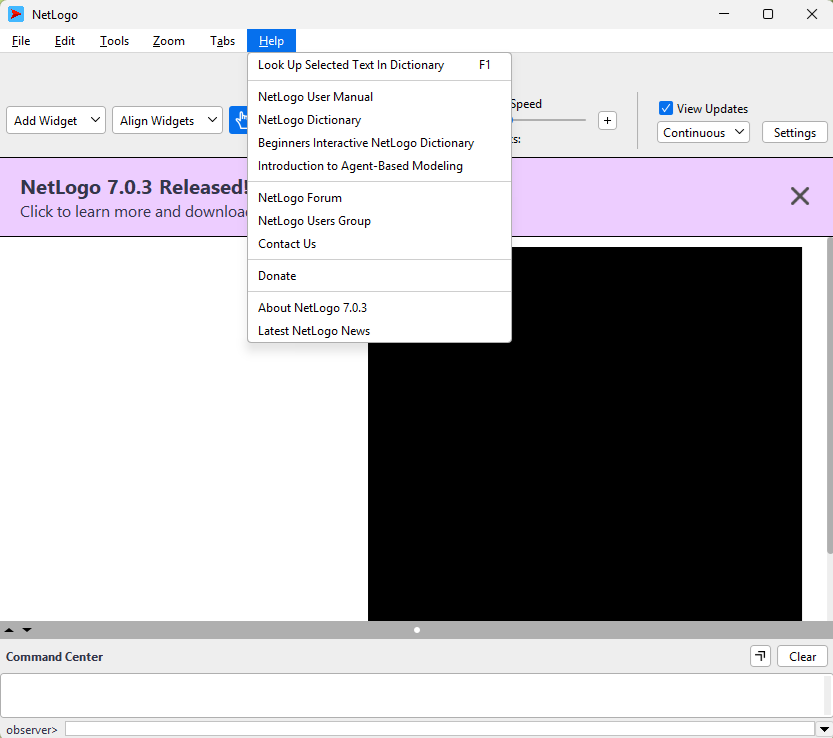 Now, I started NetLogo 7.0.3 again, and it showed a prominent banner…