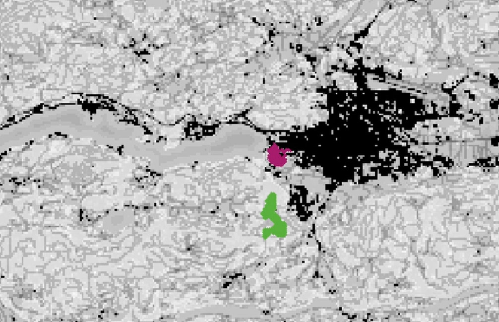 I encountered a strange behaviour of the pen drawn path of the turtles in my model. Two turtles were initiated indenpendently, pen-down, one with colour 55 one with colour 125. In the beginning they draw their own colour as path (see picture 1 and 2) but as soon as their paths connect, the whole path of both turtles combined repeatedly switches in colour (picture 3). The turtles are still moving independently, drawing further paths in their own colour, however, the switching of colours continues (picture 4).